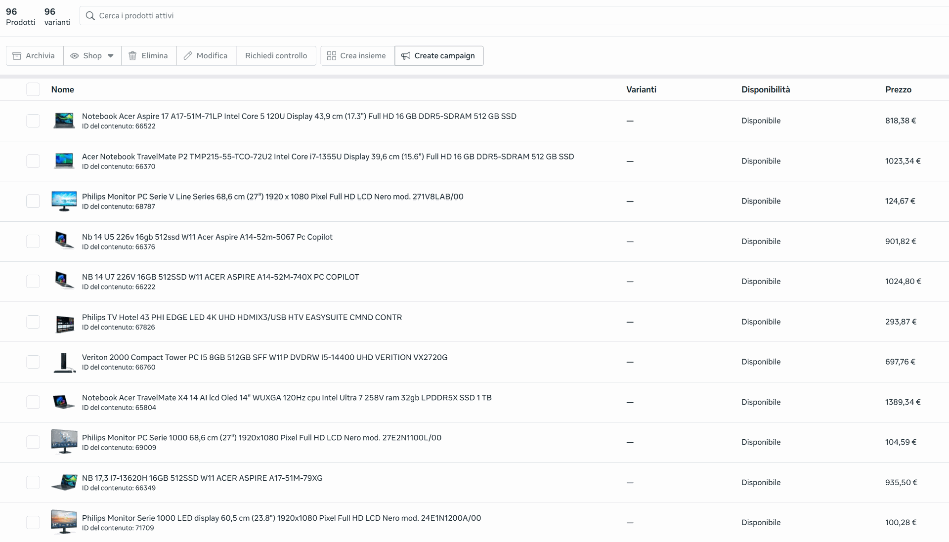 Questo approccio permette di avere un catalogo più coerente non solo nello shop, ma anche nei canali di acquisizione traffico.